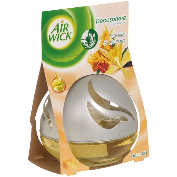 Decorative glass design shows you when it’s time for a new Decosphere room freshener. This portable liquid air freshener is ideal for bathrooms, living rooms, kitchens, bedroom, and other areas where you want to decorate with scent. Its attractive design complements any décor.